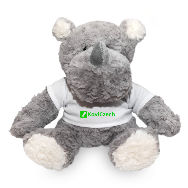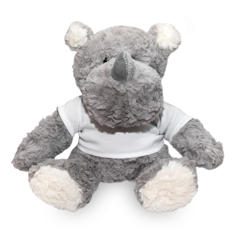 Plyšový nosorožec z heboučkého a měkkého plyše v bílém tričku určeném pro sublimační potisk. Hračku je možné zakoupit i bez potisku. Výška hračky vsedě je 20 cm. Lze prát v pračce na 30°. Hračka je vhodná jako vtipný nebo romantický dárek k Valentýnu, narozeninám či k Vánocům, pro partnera nebo děti. Výrobek je certifikován Oeko-Tex 100.
